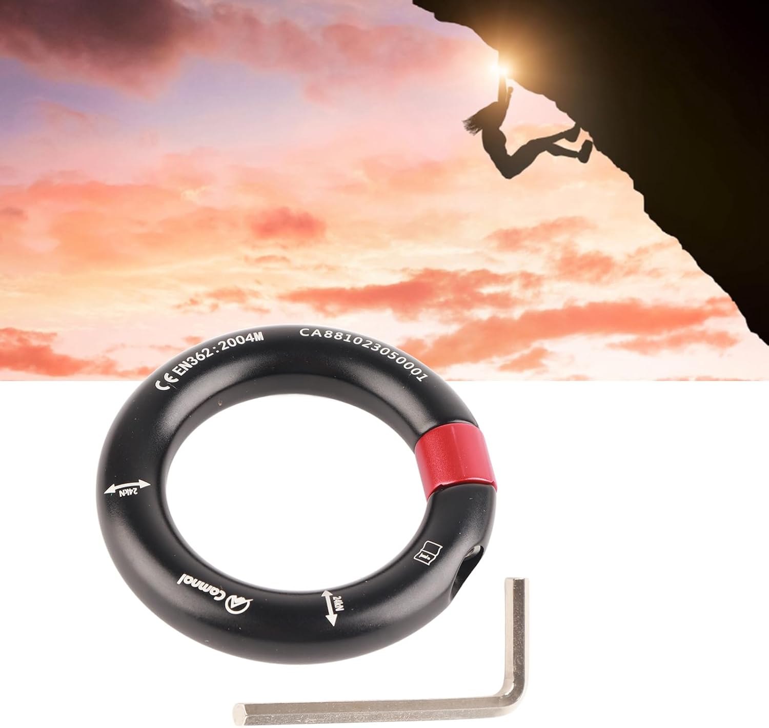 1. Professional equipment: The Rings is detachable with a 12mm opening and can be used to connect the main lock to the flat belt and seat belt. 2. Practical: Designed for semi permanent connection of equipment. Its round shape provides optimal functioning in all directions, efficient, and more uniform force. 3. Design: Evenly stressed during use, to avoid jamming when pulling the rope, and can avoid the danger of wrong orientation during installation. 4. Safe to use: With 24kn/2400kg breaking force, iso9001, ce en362:2004m, ca safety certification, opening design that allows ropes with sewn terminations to install. 5. Scope of application: Suitable for rock climbing, mountaineering, arborist rescue, descending and climbing, and high altitude keeptions. Specification: Item type: Rappel Rings Material: Aluminium alloy Opening size: Approx. 12mm/0.47in Inner diameter: Approx. 4.5cm/0.18in Outer diameter: Approx. 7cm/0.28in Breaking force: Approx. 24kn/2400kg How to use: (1) align the screws on the side of the Rings with a screwdriver (2) rotate the lock clockwise, rotate the lock counterclockwise, and unlock (3) just take out the screw Packing list: 1 xrappel Rings 1 x hex wrench