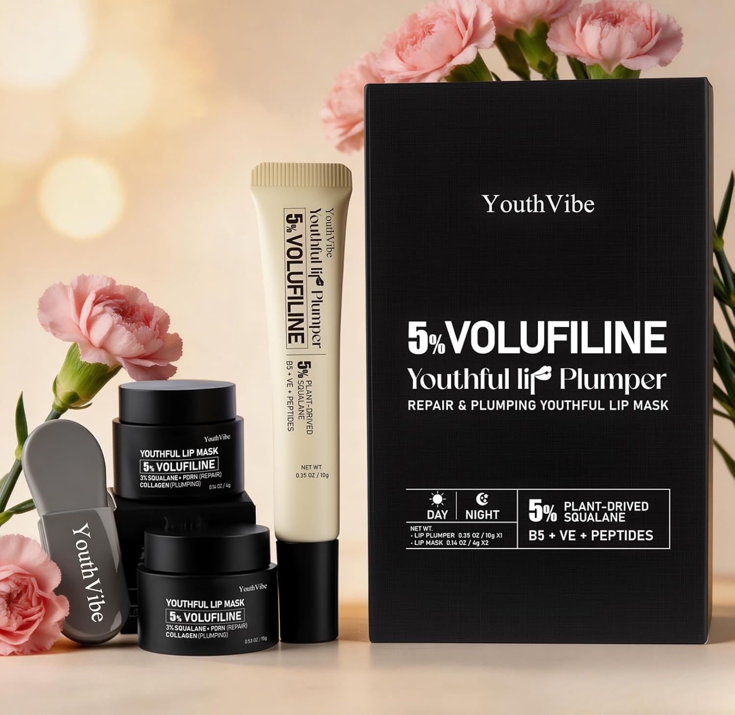 YouthVibe 5% Volufiline Lip Care Set, Nourishing & Hydrating Lip Plumper and Lip Mask with Squalane, Shea Butter, Collagen, Peptide & PDRN, Fuller-Looking Lips Over Time